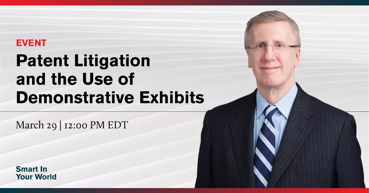 ArentFox Schiff partner Michael Cryan will speak on the “Patent Litigation and the Use of Demonstrative Exhibits: Perspectives from the US and Japan” panel on Wednesday, March 29 at 12:00 PM ET.
