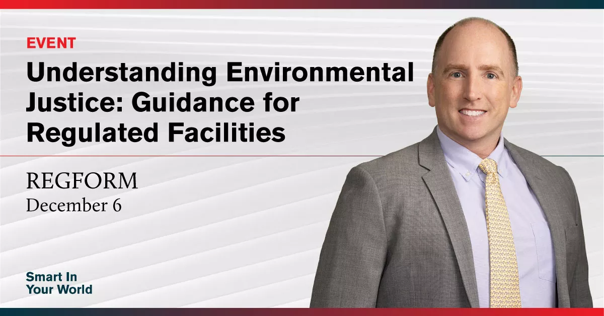 Partner Mike Showalter will present “Understanding Environmental Justice: Guidance for Regulated Facilities” hosted by REGFORM on December 6, 2022.