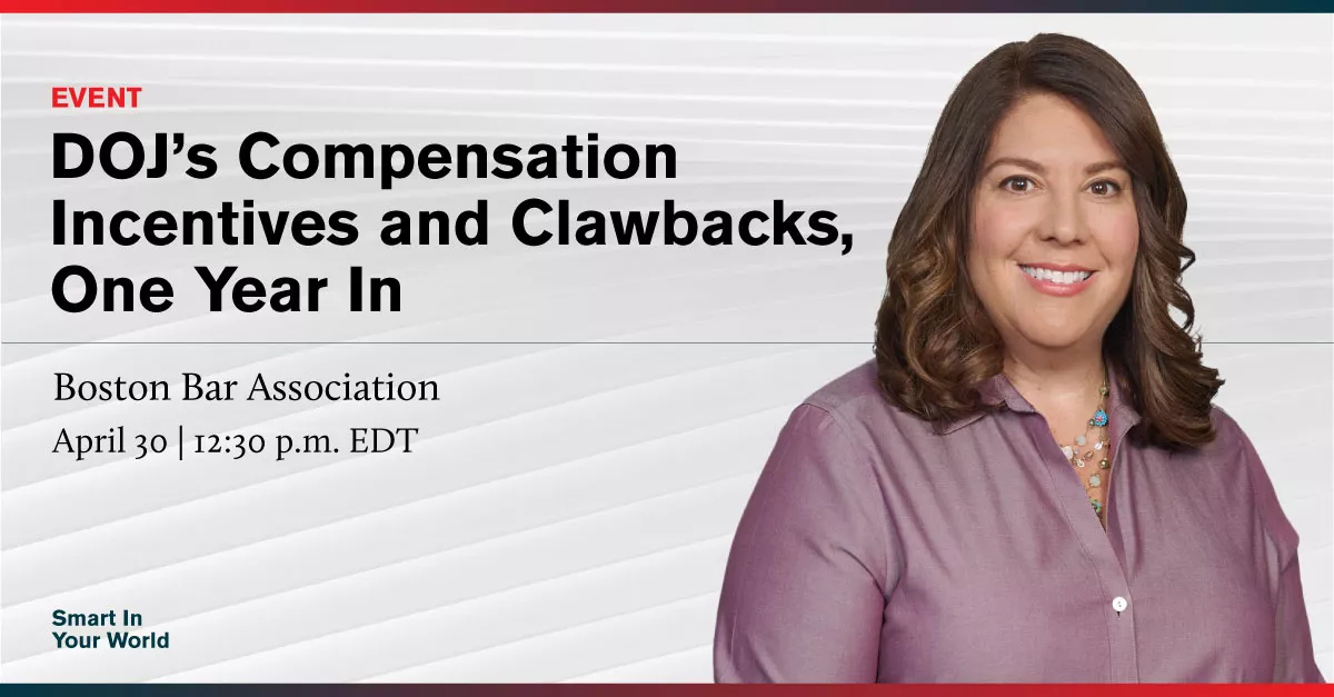 In March 2023, the Criminal Division of the US Department of Justice (DOJ) announced a three-year Pilot Program Regarding Compensation Incentives and Clawbacks, which seeks to reward companies that incentivize compliance through their compensation systems and hold wrongdoers financially accountable for their misconduct. At the intersection of employment law and criminal law, this panel will discuss DOJ expectations under the program, its application to corporate criminal resolutions during year one, and strategic considerations for companies seeking to maximize credit under the program. Come hear from a leader of the US Attorney’s Office for the District of Massachusetts and seasoned practitioners from the white-collar defense and labor and employment bars.