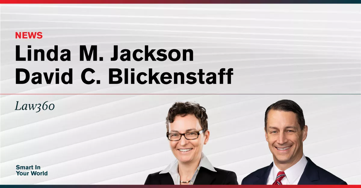 Partners Linda M. Jackson and David C. Blickenstaff, the newly appointed co-leaders of the Complex Litigation practice, were quoted by Law360 discussing their intent to continue the positive growth trajectory of their national practice, leverage the benefits of the recent merger, and focus on recruiting additional talent.
