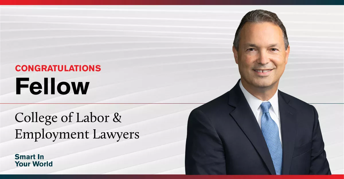 ArentFox Schiff is proud to announce that Partner Derek Barella has been elected a Fellow of the College of Labor & Employment Lawyers, a lifetime election for attorneys who have demonstrated outstanding performance and integrity, excellence, and dedication to the profession.