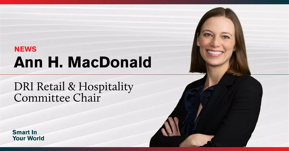 ArentFox Schiff is pleased to announce that Hospitality Practice Group Leader Ann MacDonald has been appointed chair of DRI’s Retail & Hospitality Committee.