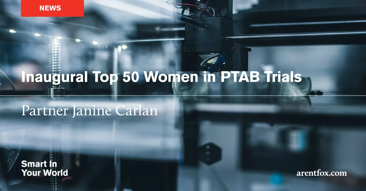WASHINGTON, DC – Arent Fox LLP is pleased to announce that Patent Litigation Partner Janine Carlan was named one of the top 50 Women at the Patent Trial and Appeal Board.