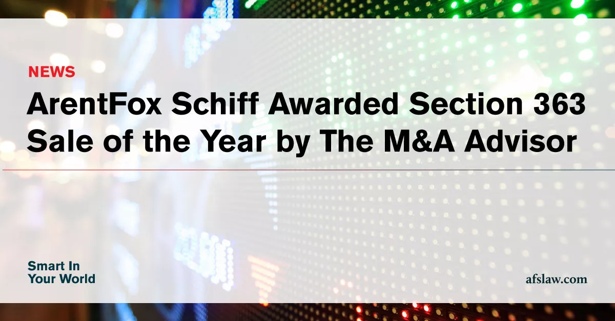 ArentFox Schiff Awarded Section 363 Sale of the Year ($10MM to $50MM) by The M&A Advisor