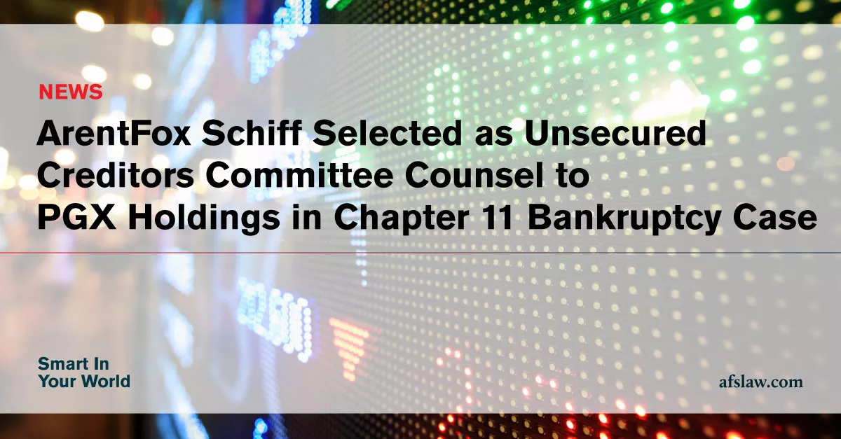 ArentFox Schiff Selected as Unsecured Creditors Committee Counsel to PGX Holdings in Chapter 11 Bankruptcy Case